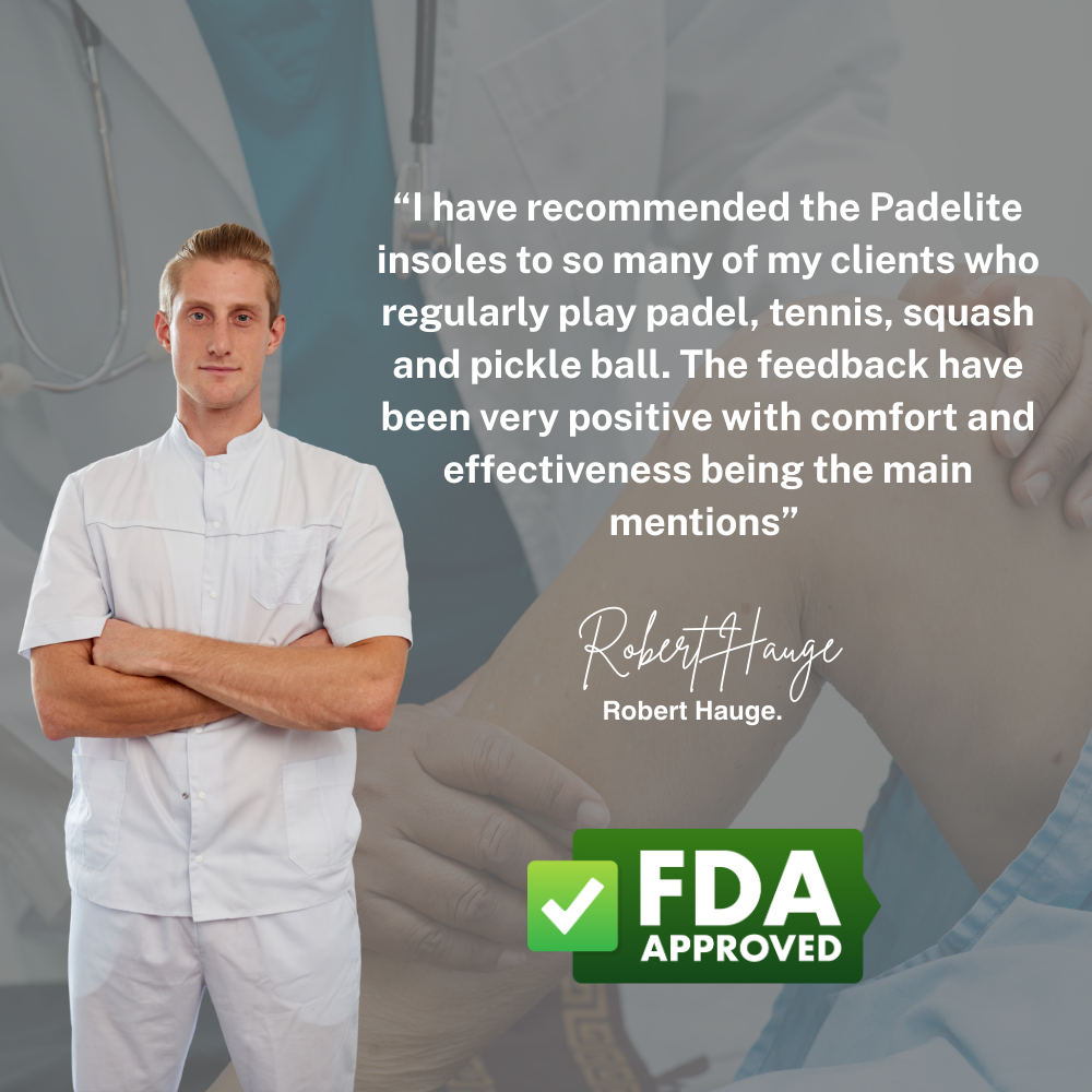 "I invested in the Padelite insoles after I started experiencing sharp knee pains after long padel sessions but now I can last back to back hour sessions" - Harry T.